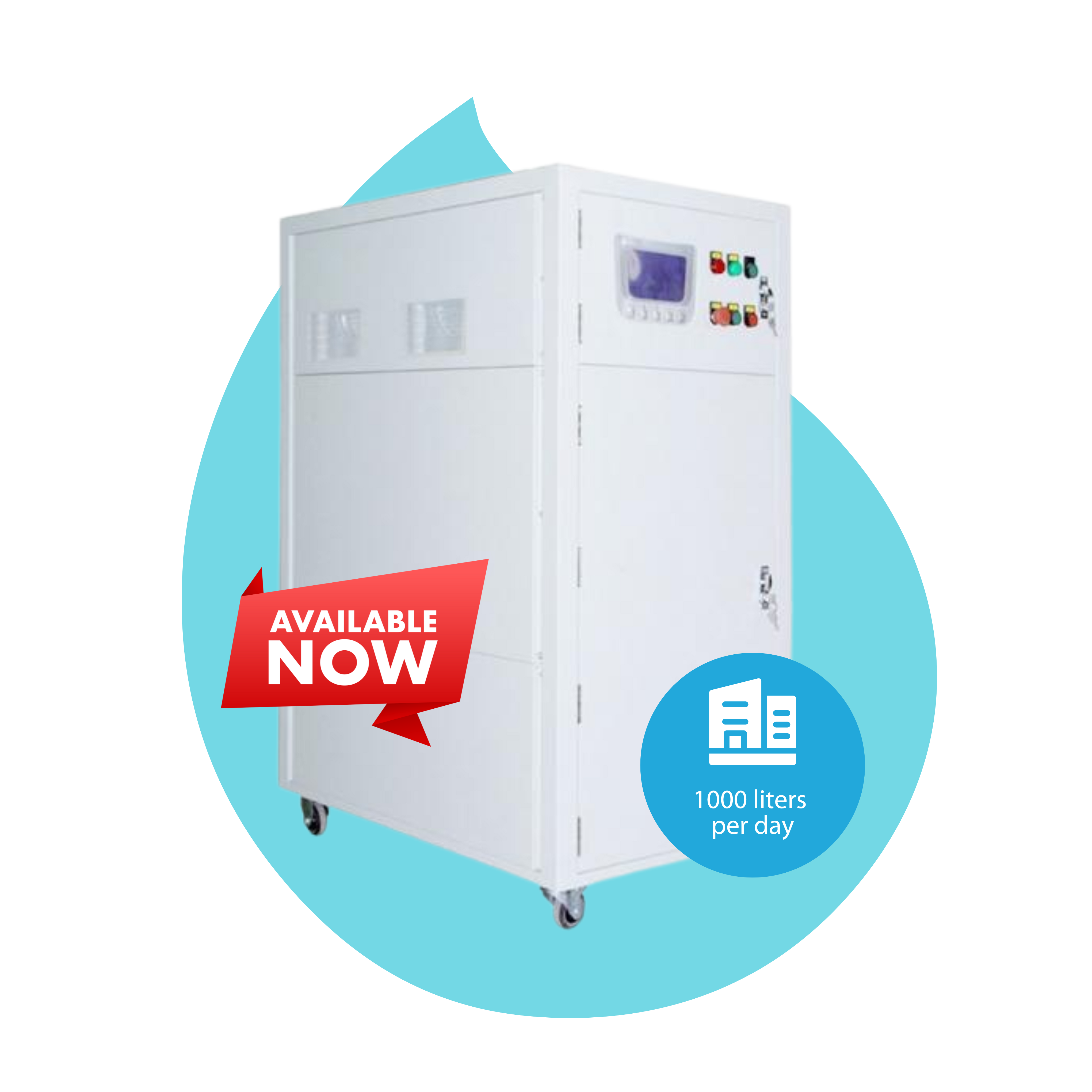 Para aplicaciones industriales extensas, la Siempre Agua 1000L ofrece tecnología de vanguardia que produce hasta 1000 litros de agua pura por día. Este sistema de alta capacidad asegura que tu empresa tenga un suministro constante y confiable de agua, sin importar la escalada.