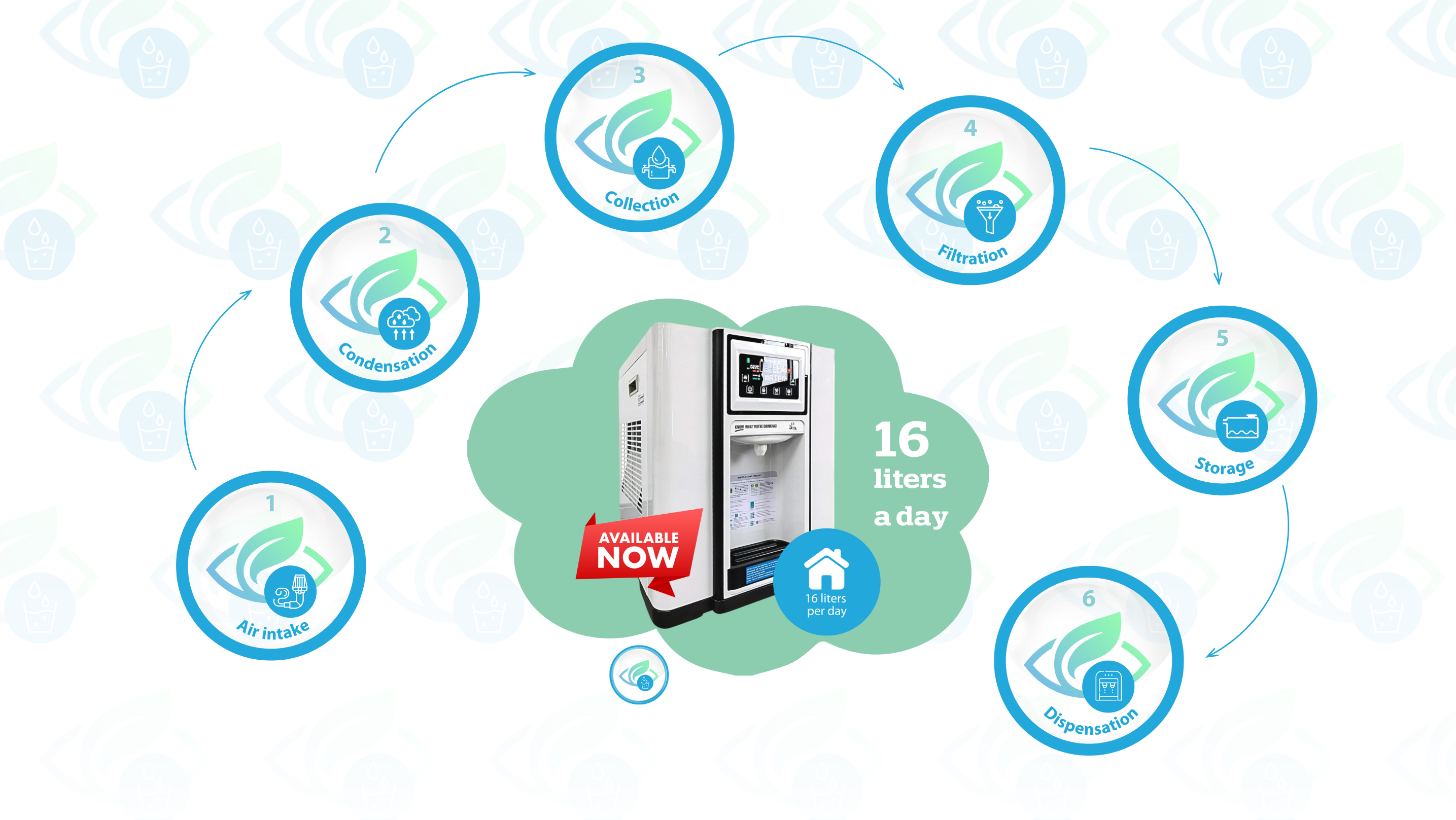 Aproveche la humedad natural con el generador de agua atmosférico de 16 litros de Siempre Agua para el hogar y la oficina. Produce hasta 16 litros de agua fresca y purificada al día. Si busca el generador de agua con la mejor relación calidad-precio para el hogar, esta solución compacta y de bajo consumo le ofrece una relación calidad-precio excepcional. Diseñado para integrarse perfectamente en cualquier espacio, ya sea en su hogar u oficina, es eficiente, sostenible y siempre fresco.